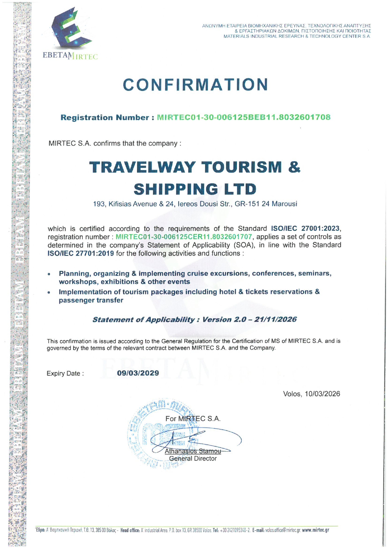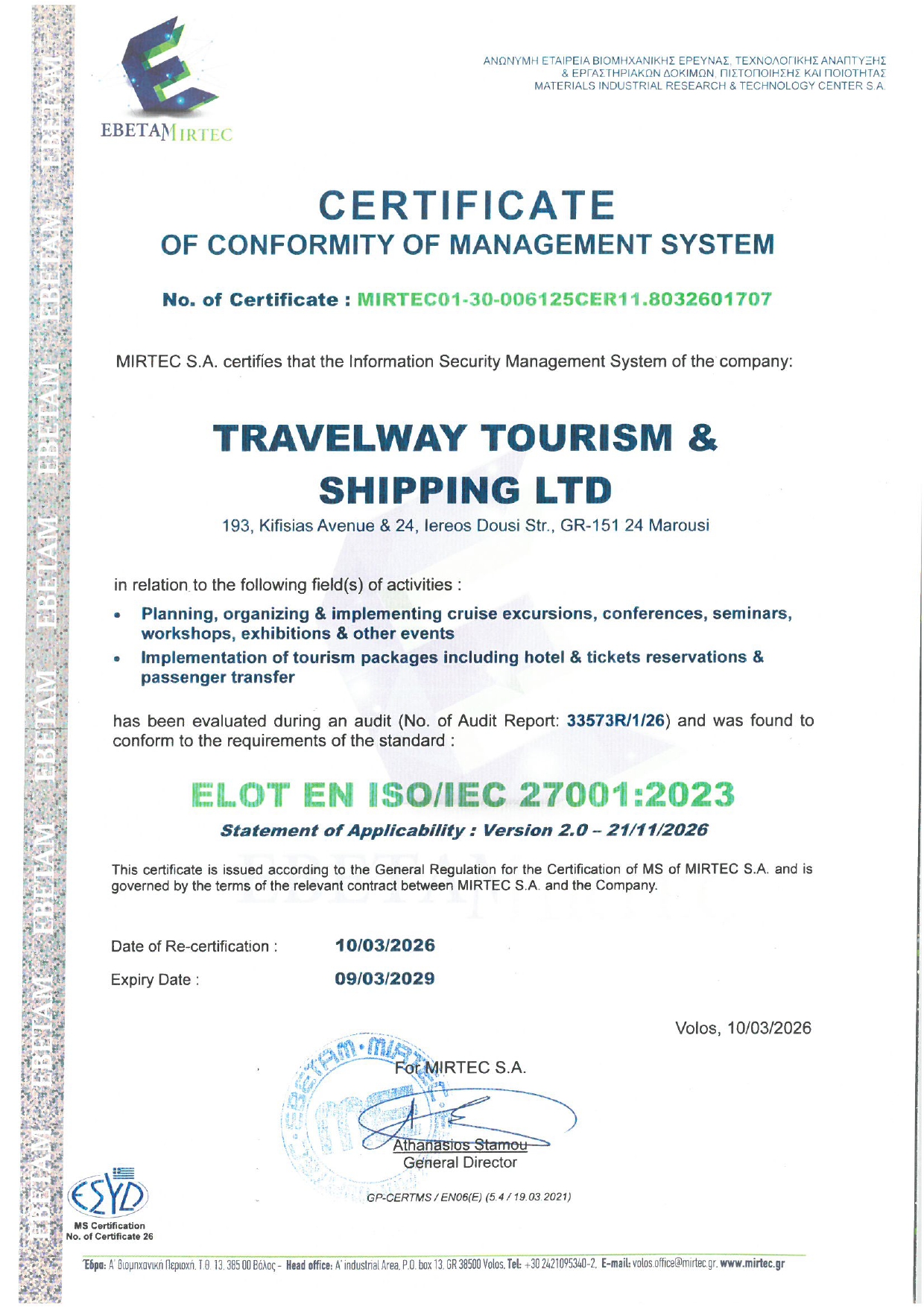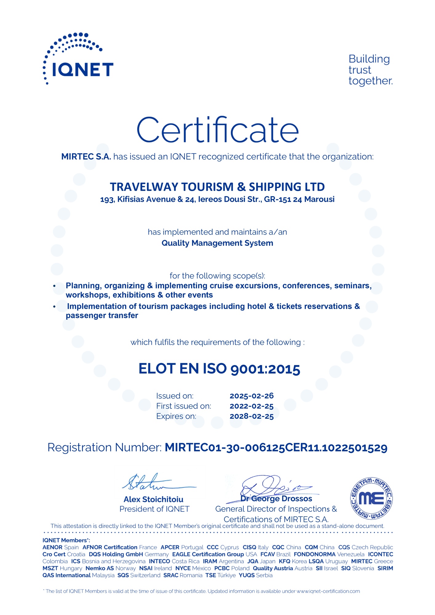 Travelway Europe Certificate